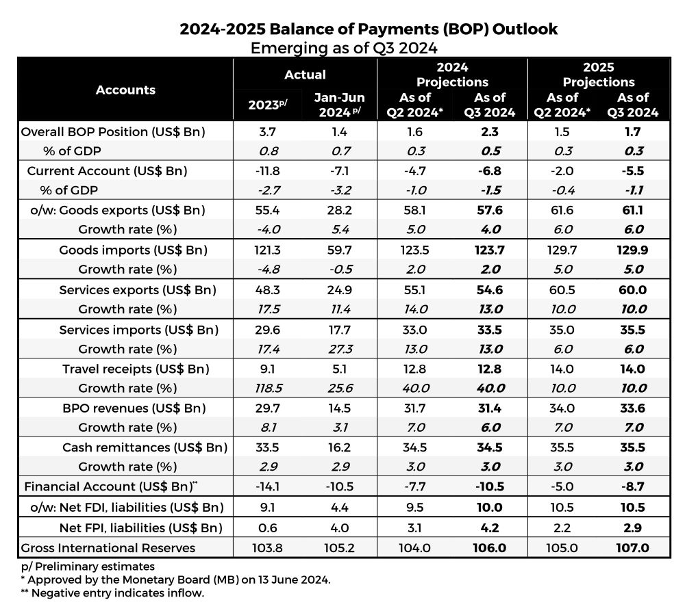 The Bangko Sentral ng Pilipinas (BSP) has announced recently that the Philippine economy is poised for a more favorable balance of payments (BOP) position in 2024 and 2025, marking an improvement from projections made in June 2024.
