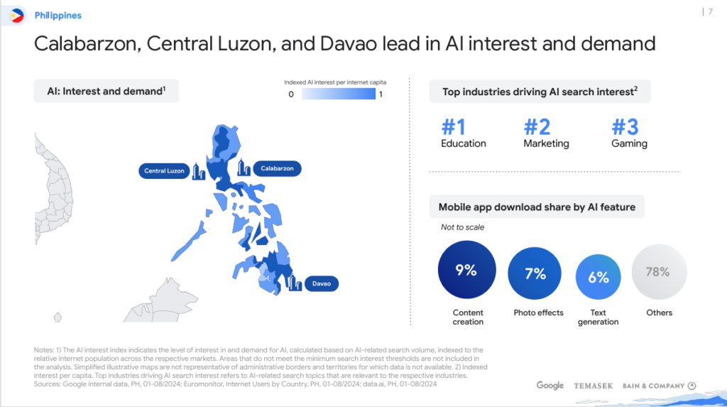 Filipinos are particularly keen on AI applications in education, marketing, and gaming, with search trends expanding beyond Metro Manila into regions like CALABARZON and Davao.