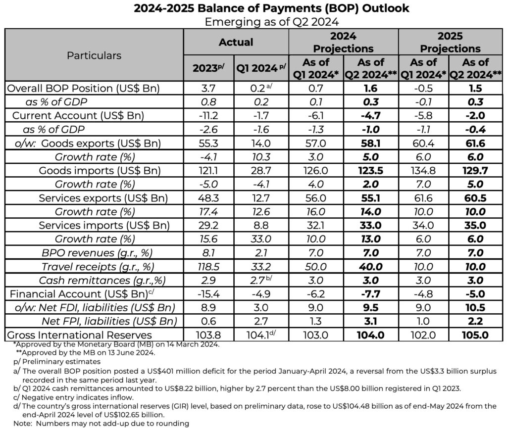 The Monetary Board has released its latest balance of payments (BOP) projections for 2024 and 2025, reflecting an optimistic outlook buoyed by global economic expansion and robust domestic demand.
