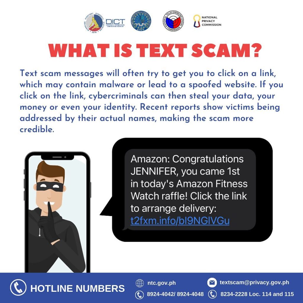 He added that the DICT cannot combat the scammers’ advanced equipment, and urged the public not to immediately click on links sent through text messages or call the number.