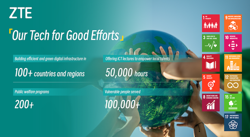 As a member of the United Nations Global Compact (UNGC) and the Global Enabling Sustainability Initiative (GeSI), ZTE has received multiple accolades for its sustainability efforts, including being named in the FTSE4Good Index Series and Fortune China ESG Impact List for consecutive years.
